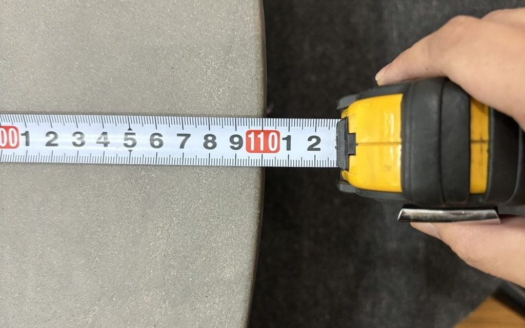 丸テーブルは、同じ「直径」でも、実際に使える天板の有効面積が四角いテーブルに比べて体感的に狭く感じることがあります。また、お部屋の広さに対して大きすぎるサイズを選んでしまうと、動線が悪くなったり、圧迫感が出てしまったりすることも。